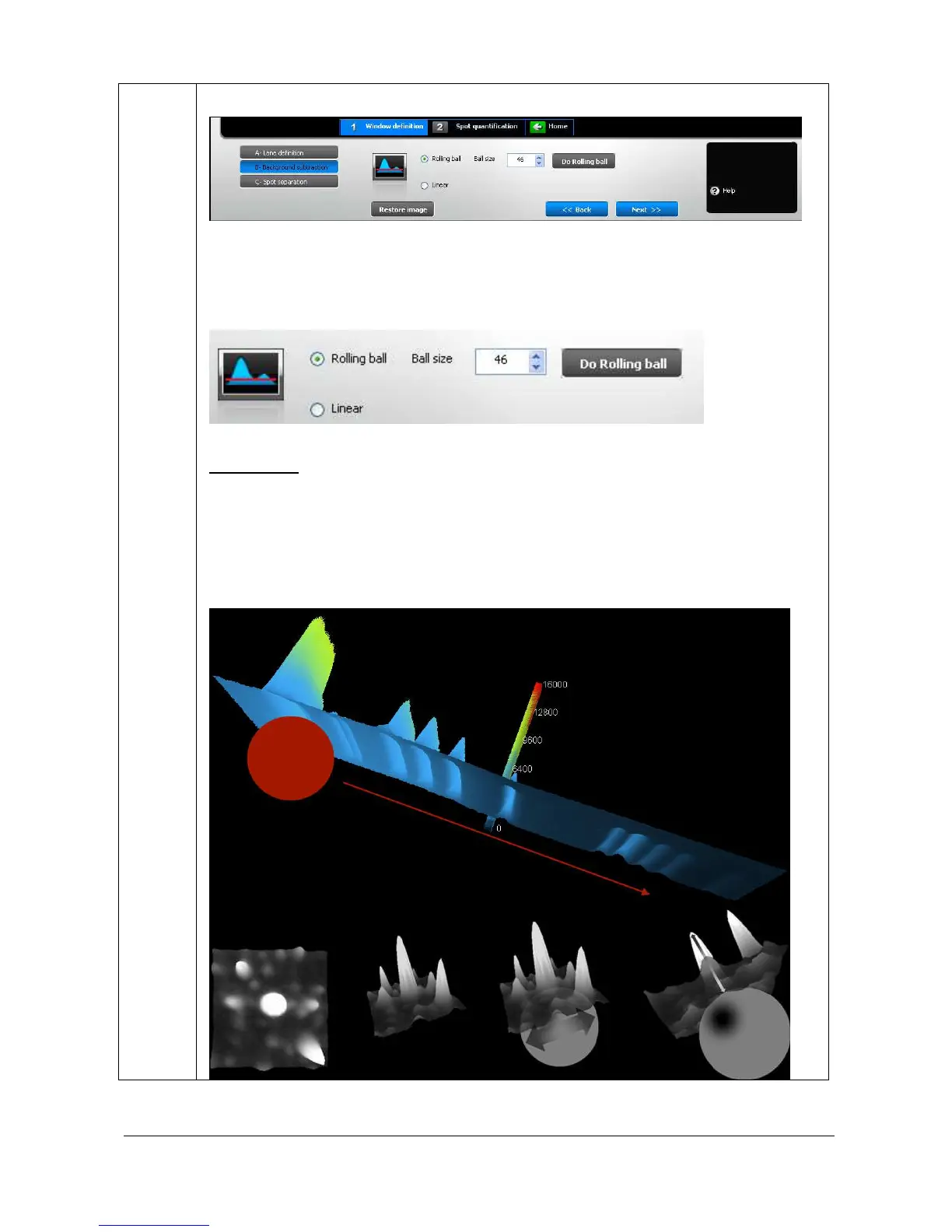The rolling ball subtraction method removes background levels along the length of the lanes