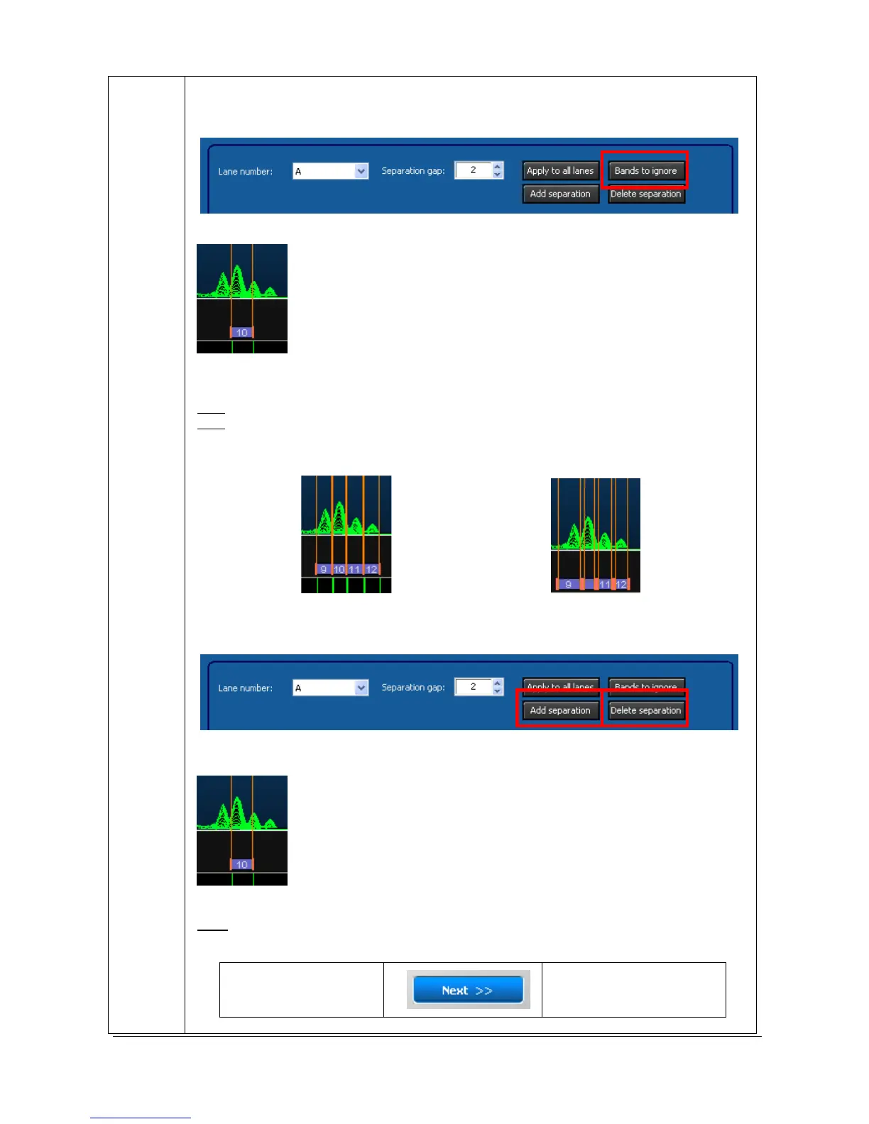 To ignore add a separation or delete a separation, select “Bands to ignore” from the profile’s