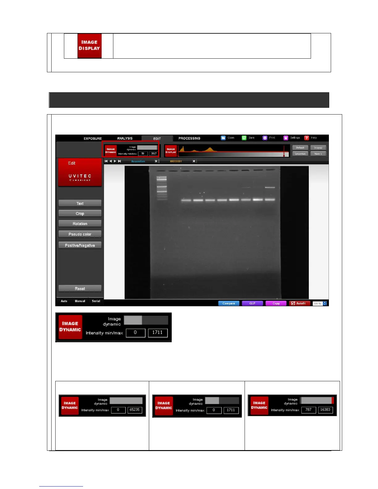 The Image Master data informs you of the obtained dynamic on your image compared to the potential image