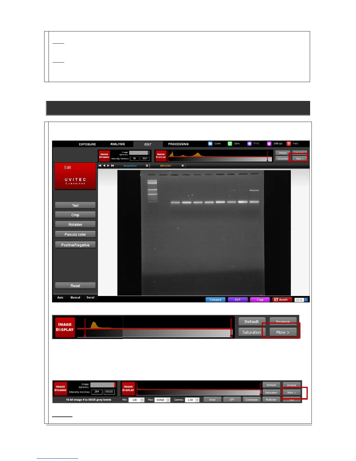 Note: A saturated image creates quantification error when studied by an image analysis software. Gel-