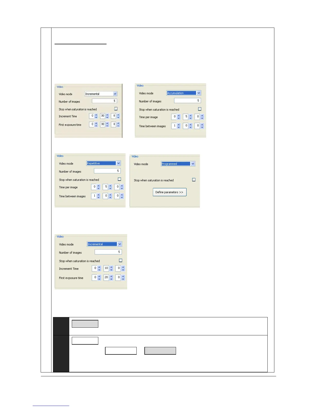 In the incremental mode, you define the exposure time of the first image of the series, then the time