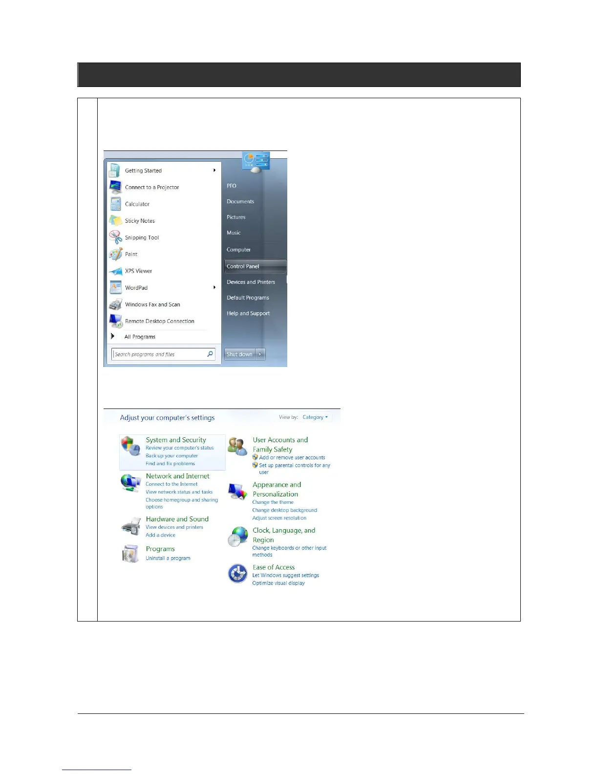 The software opens the Windows setting options; For Windows 7, select System and security,