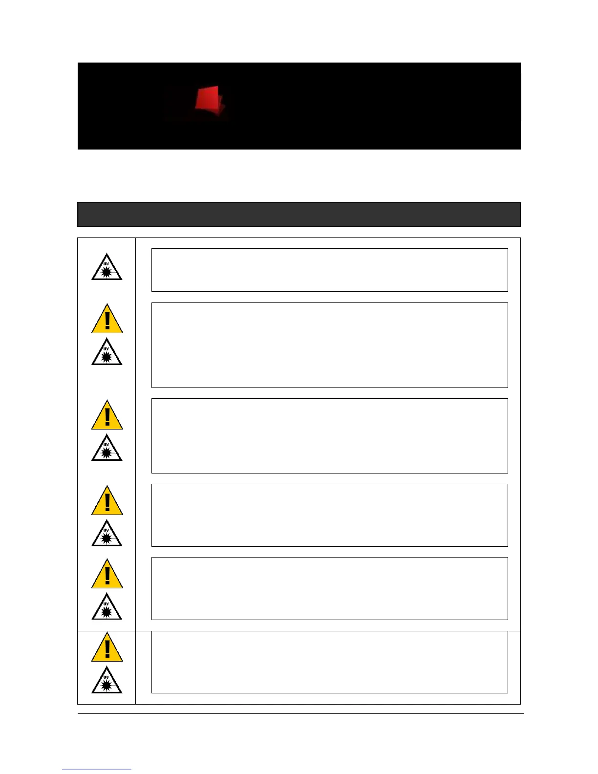 gloves. UV radiation can be dangerous for unprotected eyes and skin;