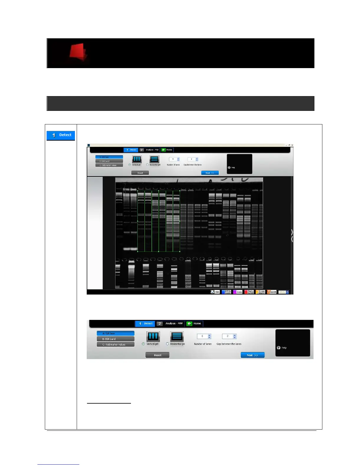 On the image, click and drag to define the analysis area and to overlap the lanes. You can