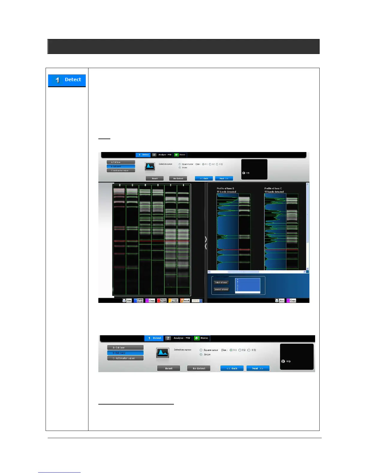 can also manually mark the bands on the image or on the lane’s profile. All bands will