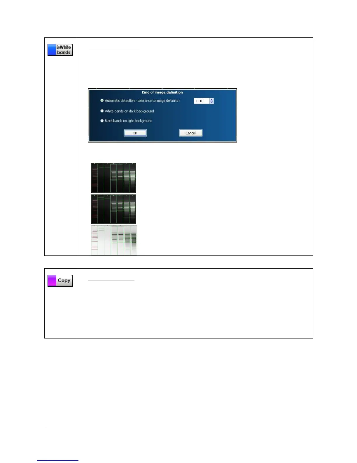 To proceed, click on the Black/White bands icon. A pop-up window displays the following