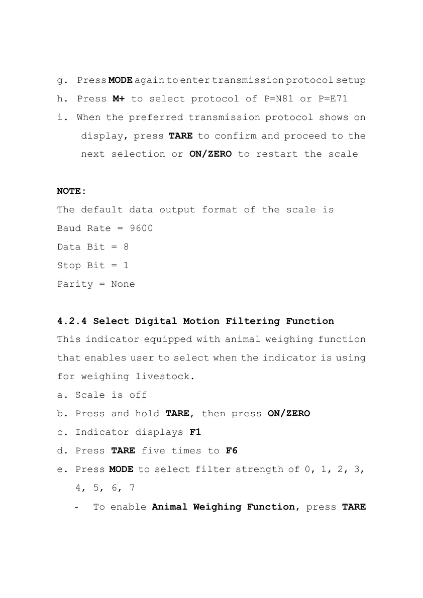 g. Press MODE again to enter transmission protocol setup