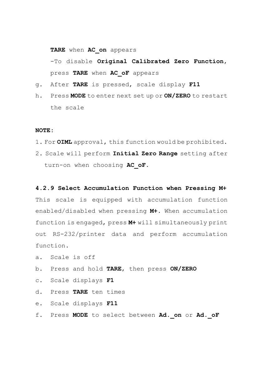 h. Press MODE to enter next set up or ON/ZERO to restart