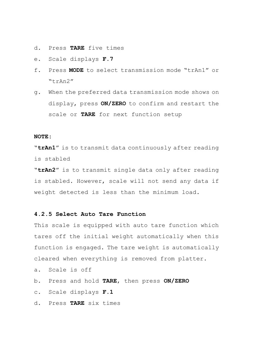 4.2.5 Select Auto Tare Function