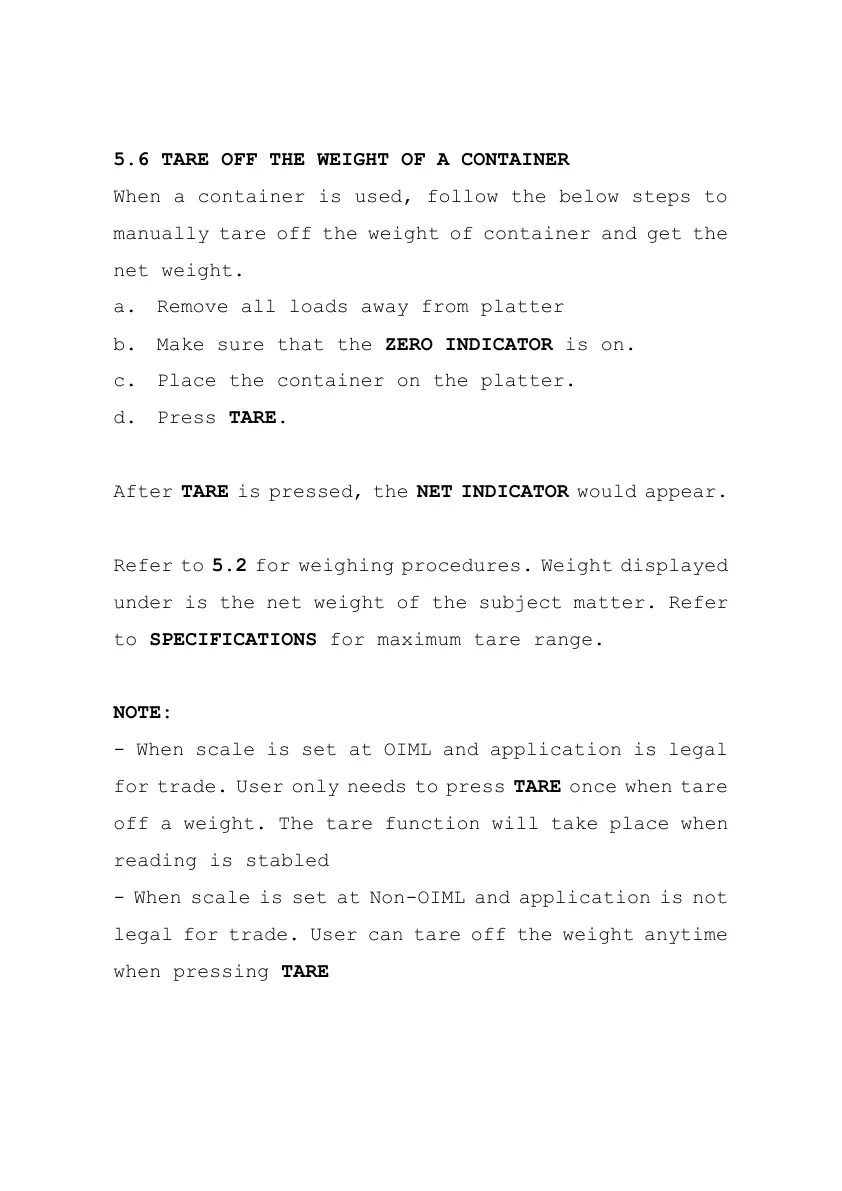 legal for trade. User can tare off the weight anytime