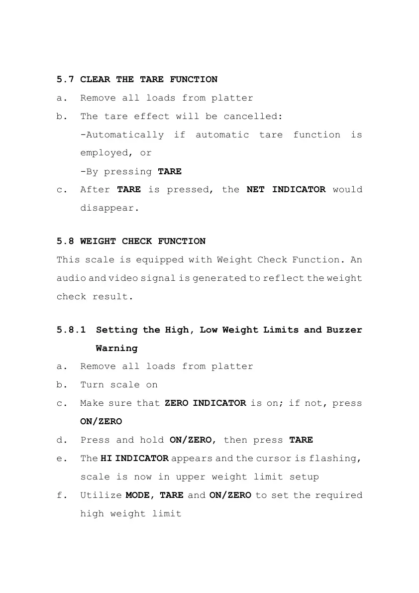 5.7 CLEAR THE TARE FUNCTION