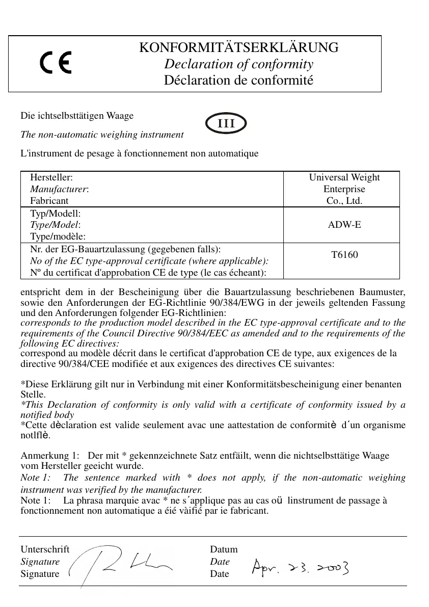 Note 1: The sentence marked with * does not apply, if the non-automatic weighing