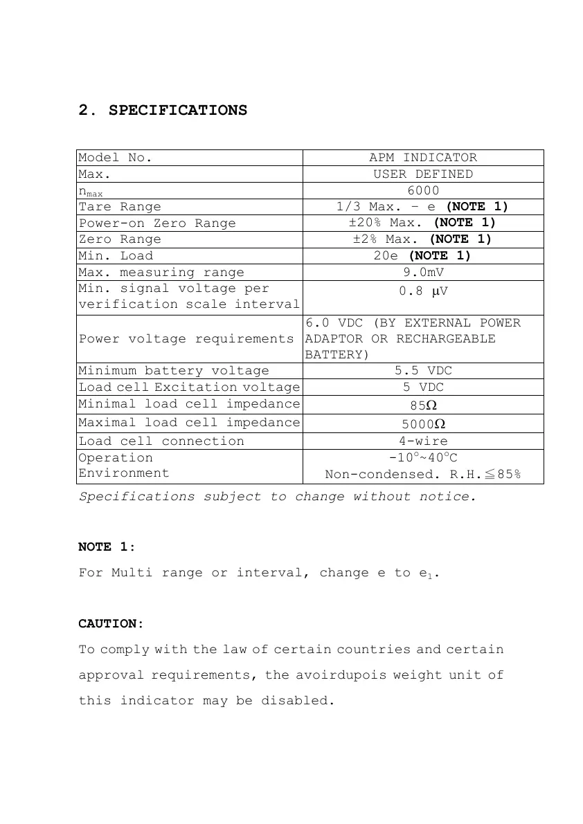 2. SPECIFICATIONS