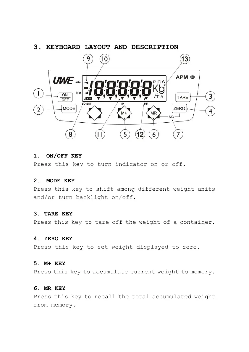Press this key to accumulate current weight to memory.