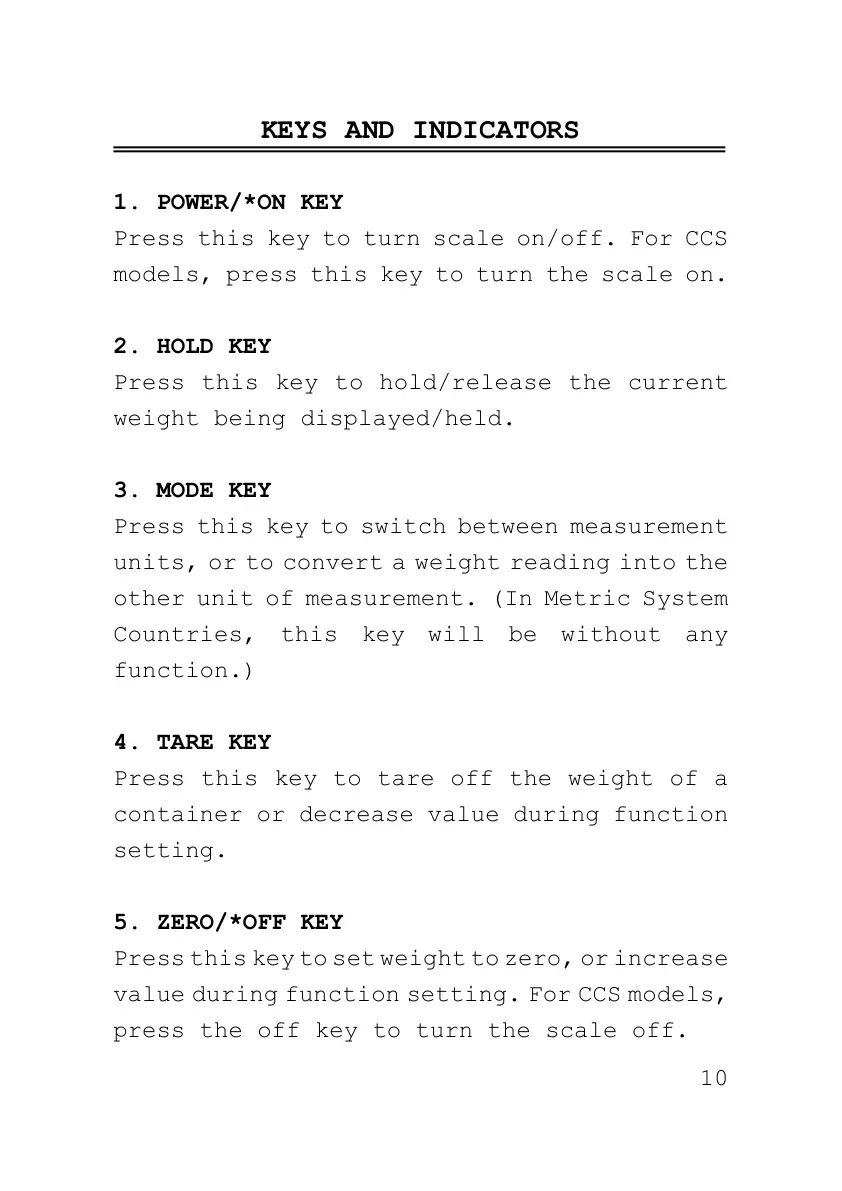 models, press this key to turn the scale on.