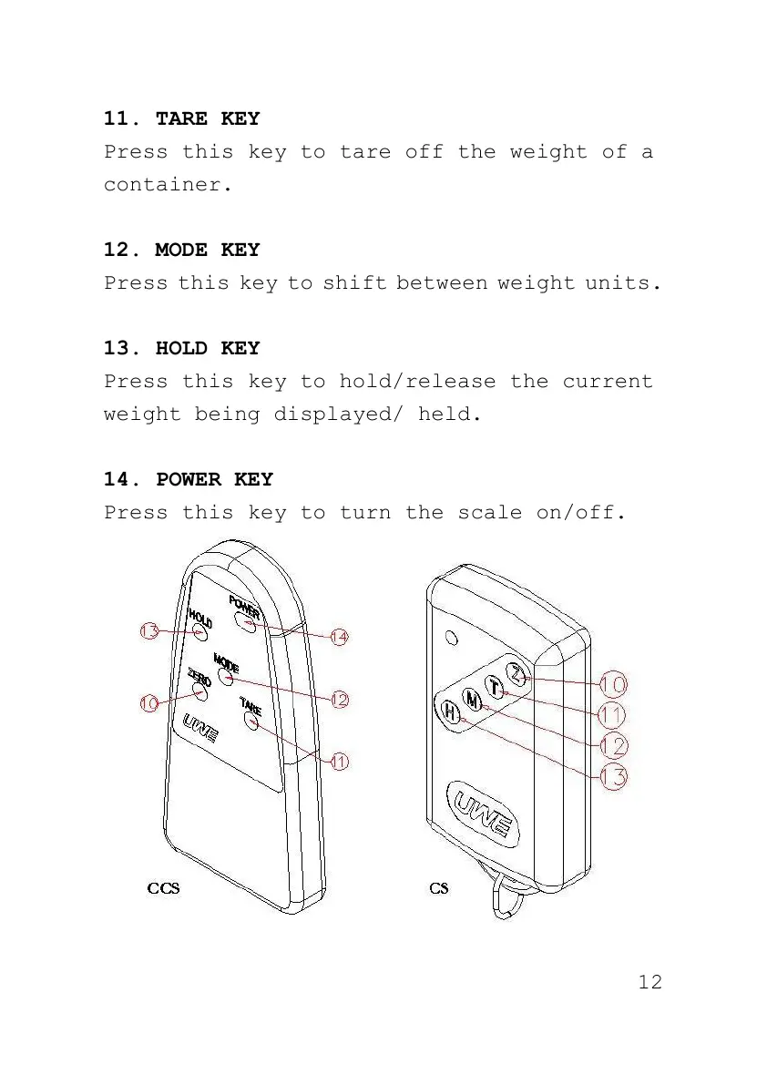 UWE CS Series - OTHER REMOTE CONTROL KEYS; REMOTE CONTROL FUNCTIONS