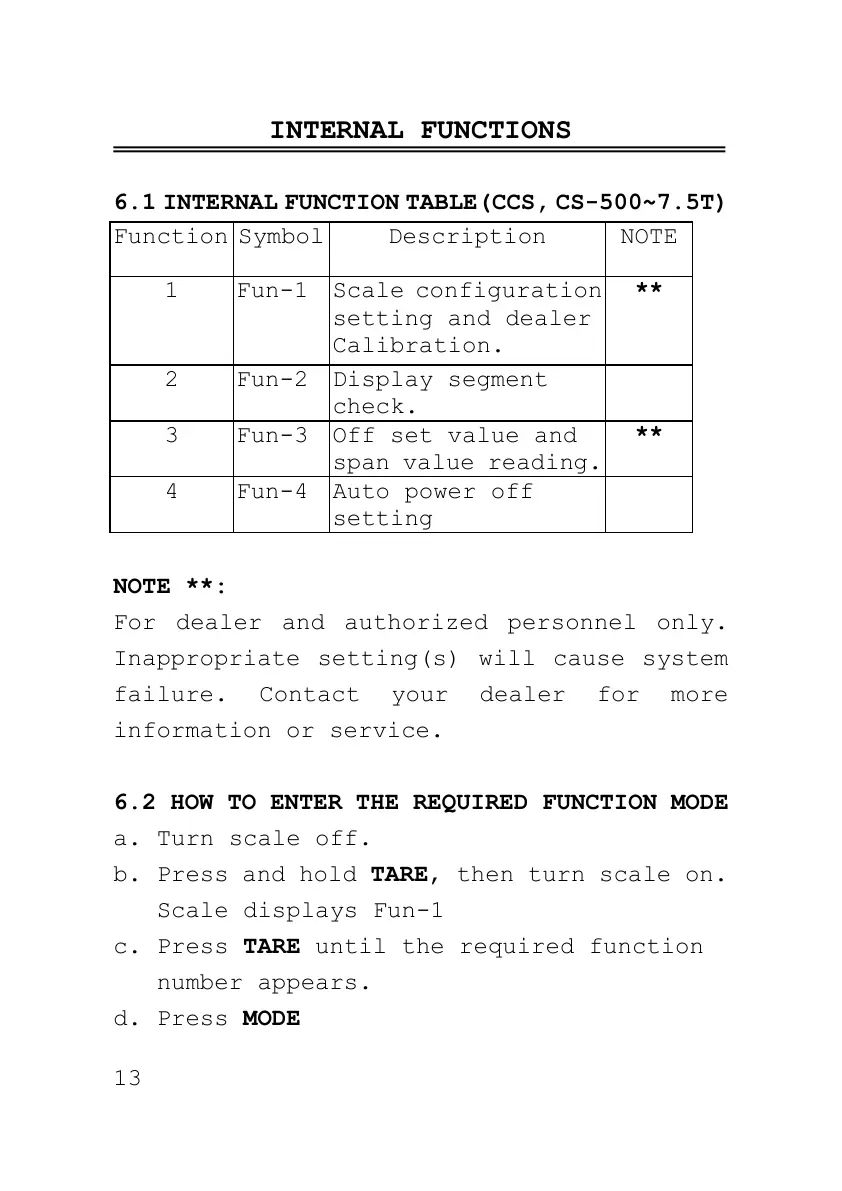 6.1 INTERNAL FUNCTION TABLE(CCS, CS-500~7.5T)