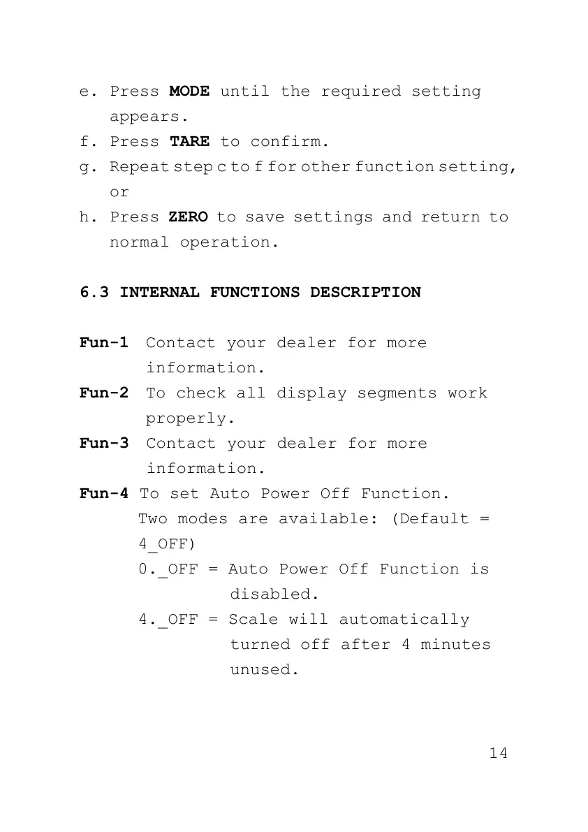 Fun-4 To set Auto Power Off Function.