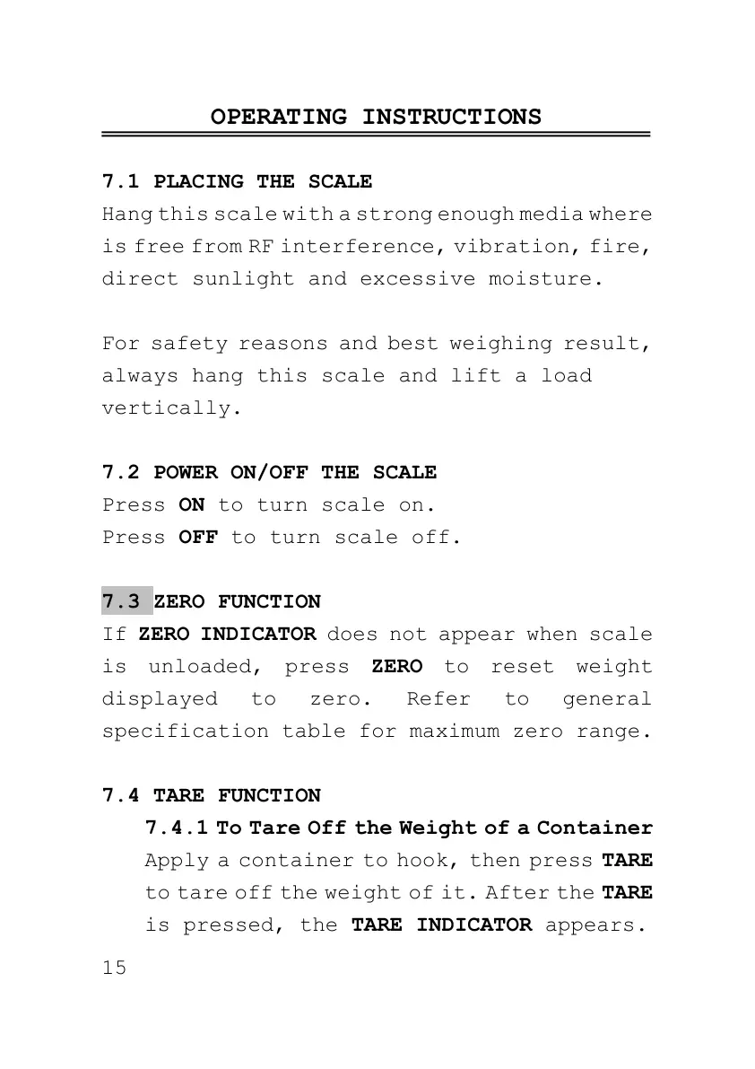 7.2 POWER ON/OFF THE SCALE