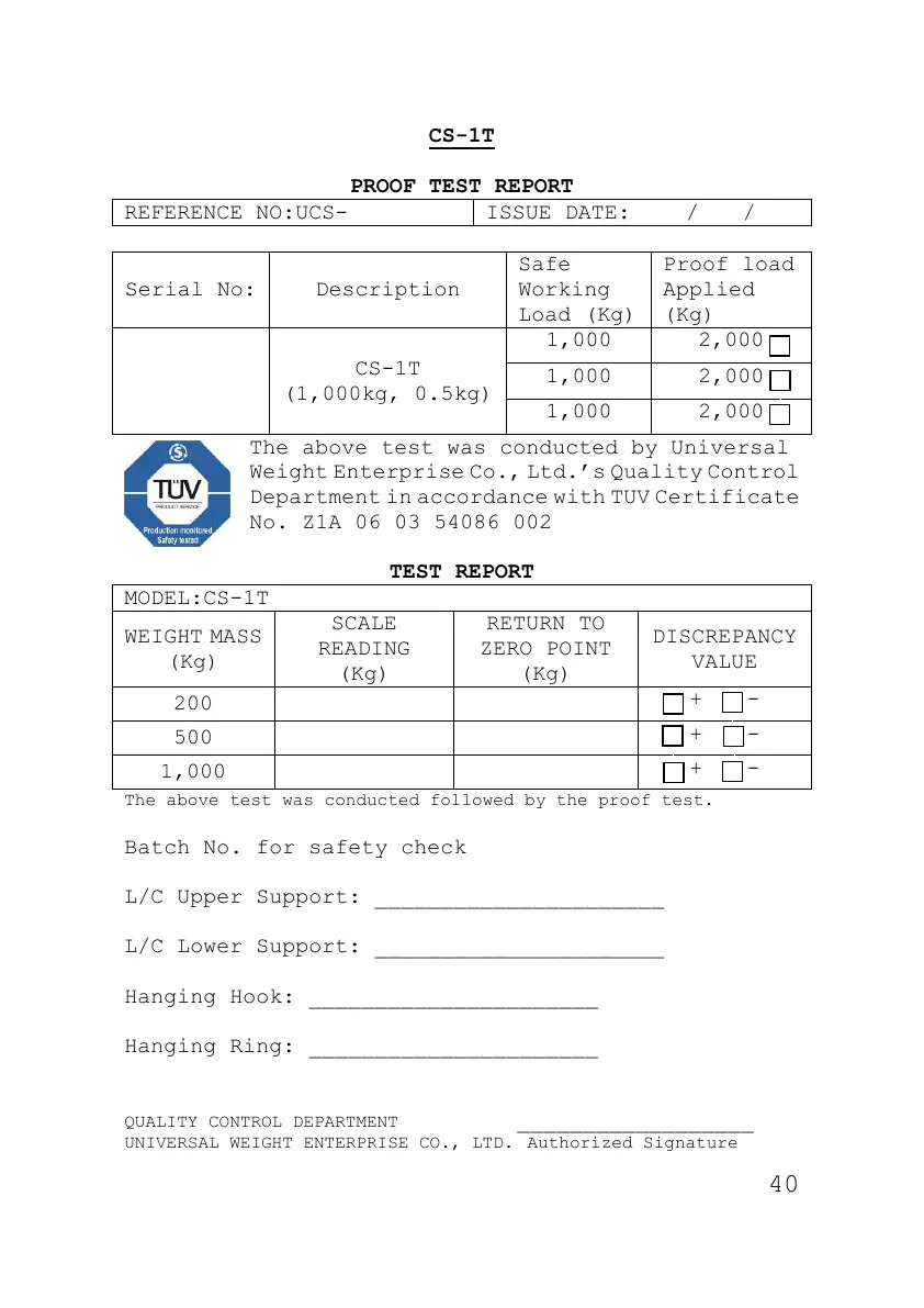 UNIVERSAL WEIGHT ENTERPRISE CO., LTD. Authorized Signature