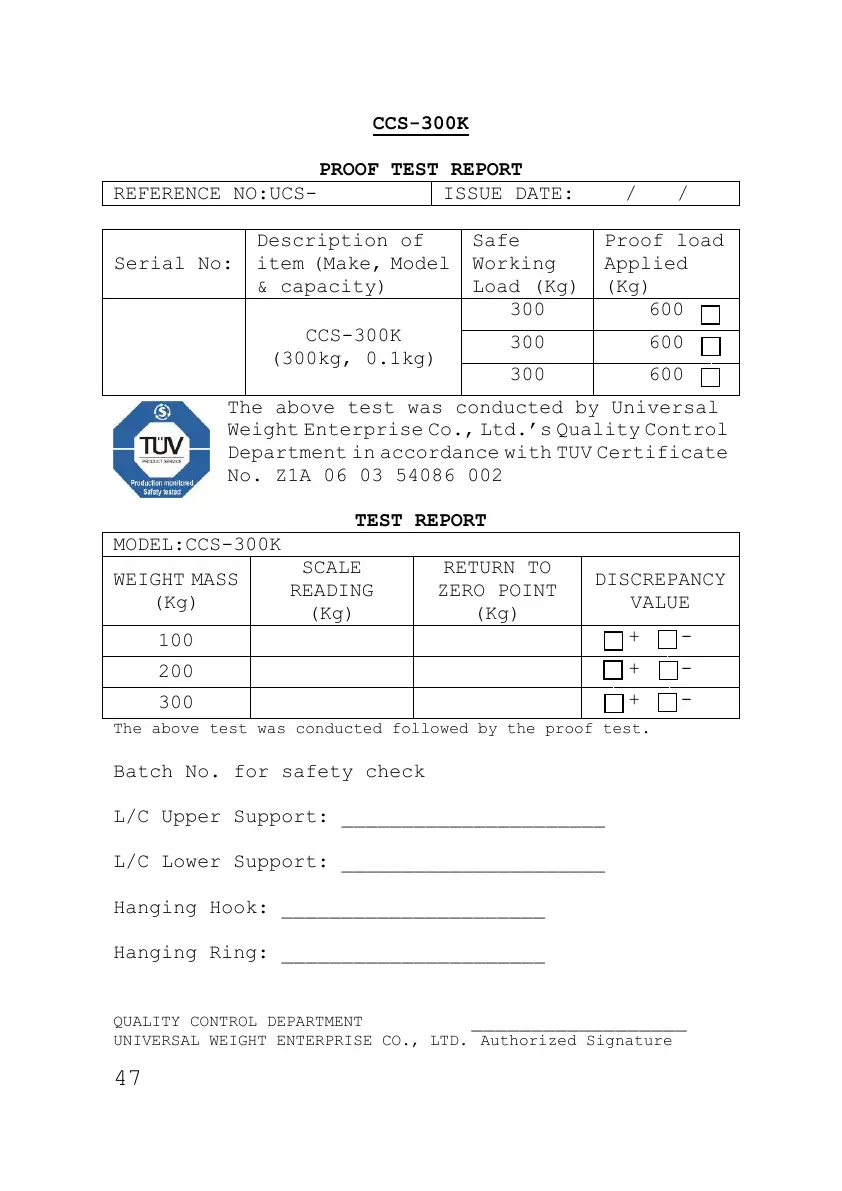 UNIVERSAL WEIGHT ENTERPRISE CO., LTD. Authorized Signature