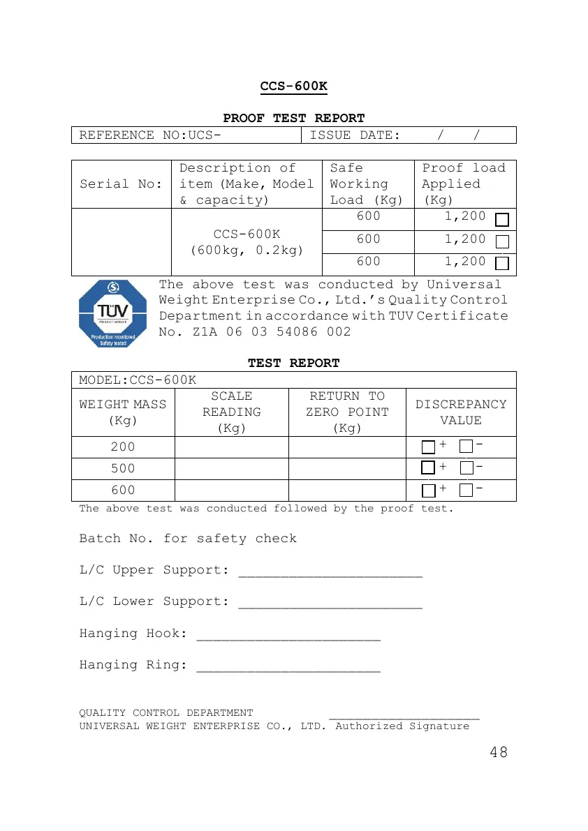 Department in accordance with TUV Certificate
