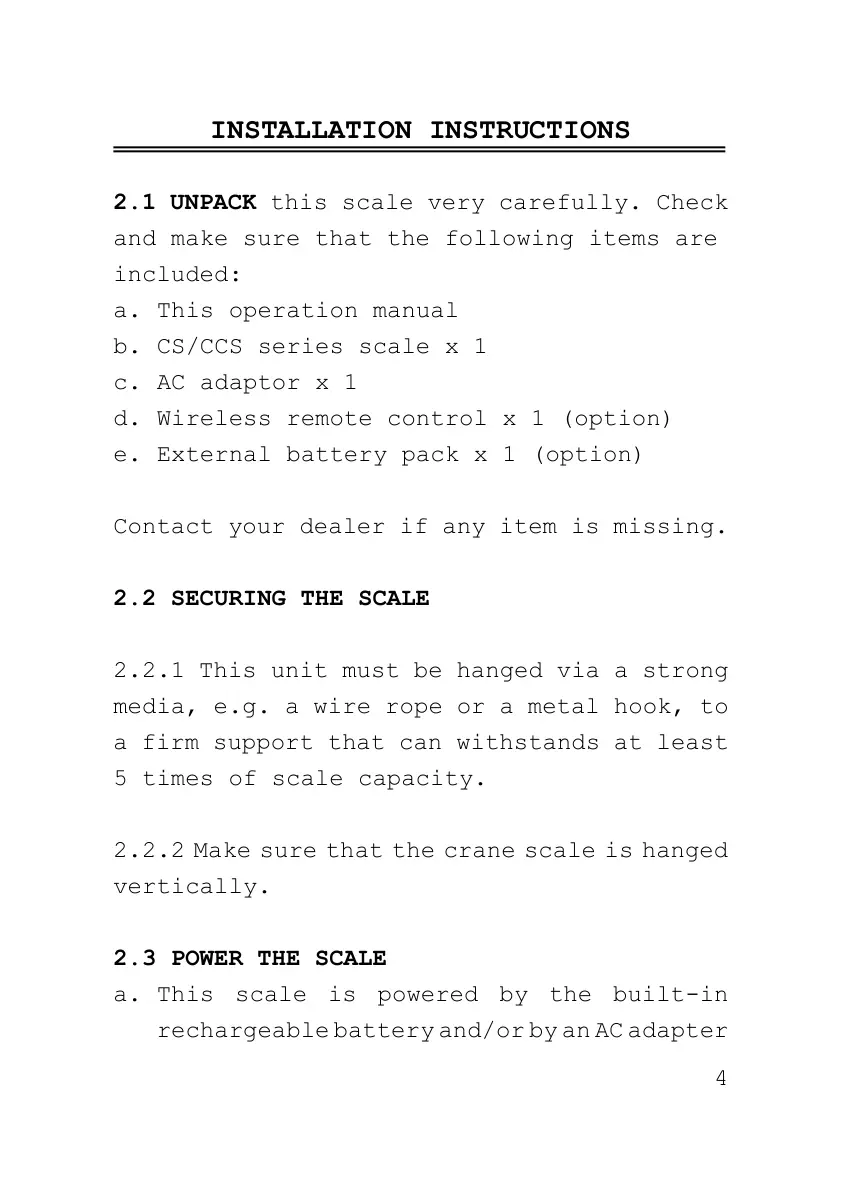 UWE CS Series - INSTALLATION INSTRUCTIONS; SECURING THE SCALE; POWER THE SCALE