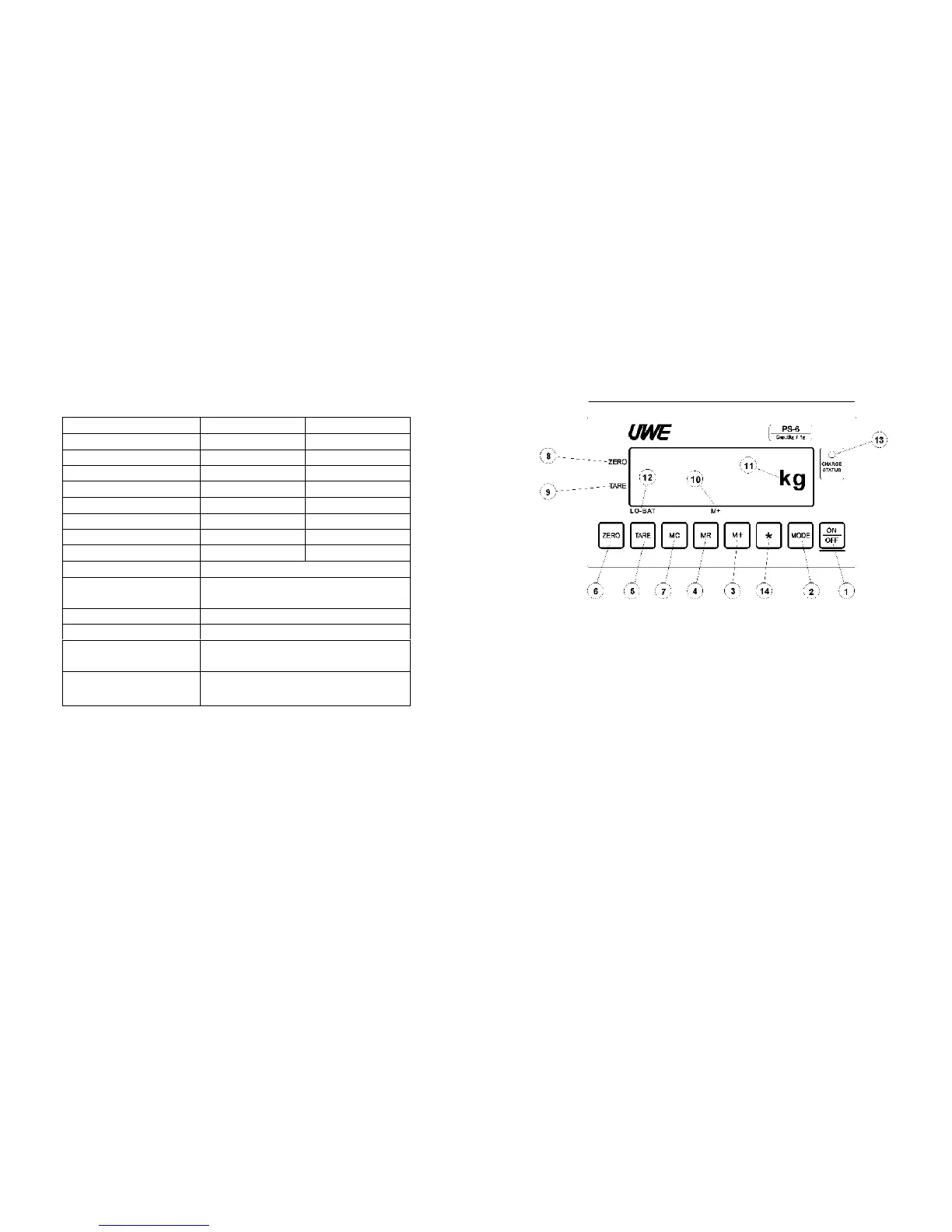 1. ON/OFF KEY Press this key to turn scale