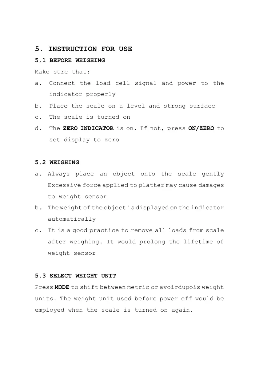 5.1 BEFORE WEIGHING