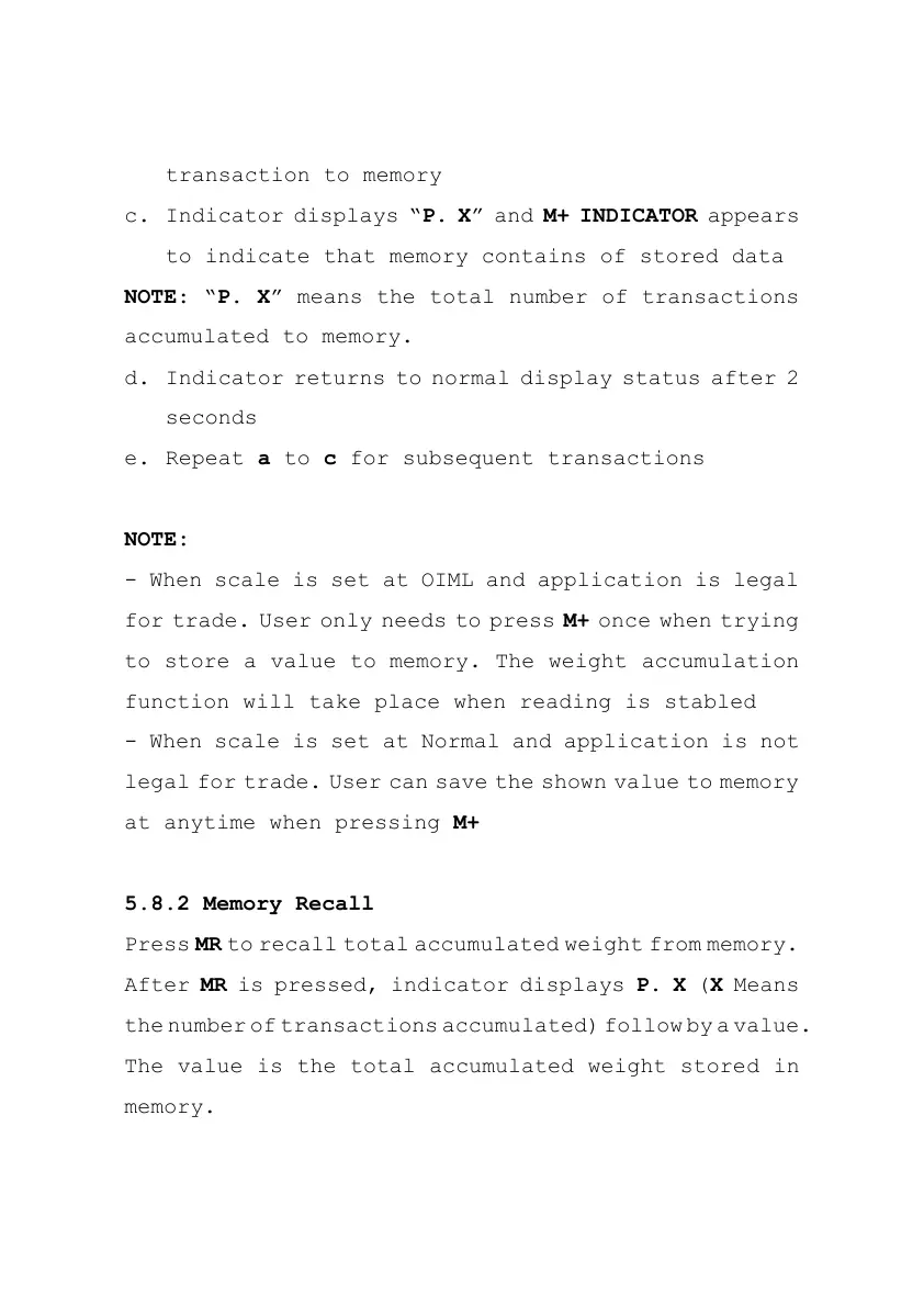 After MR is pressed, indicator displays P. X (X Means