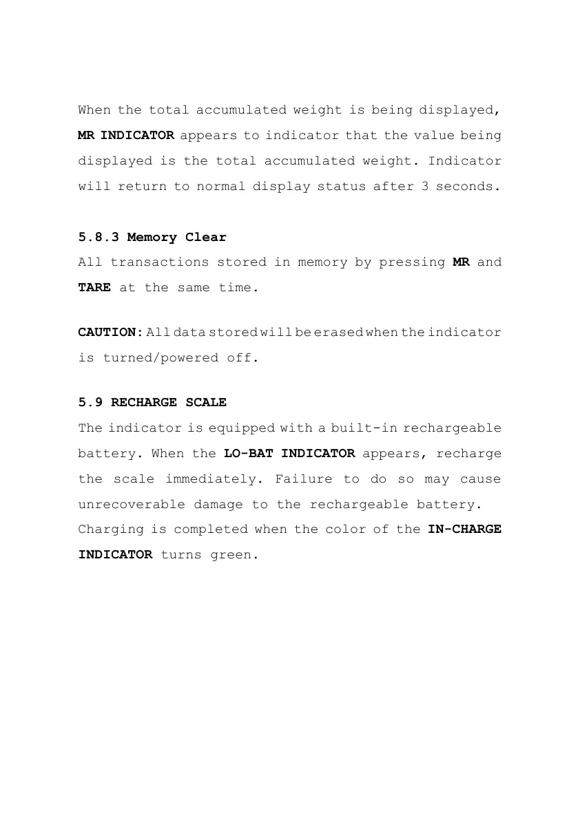 CAUTION: All data stored will be erased when the indicator