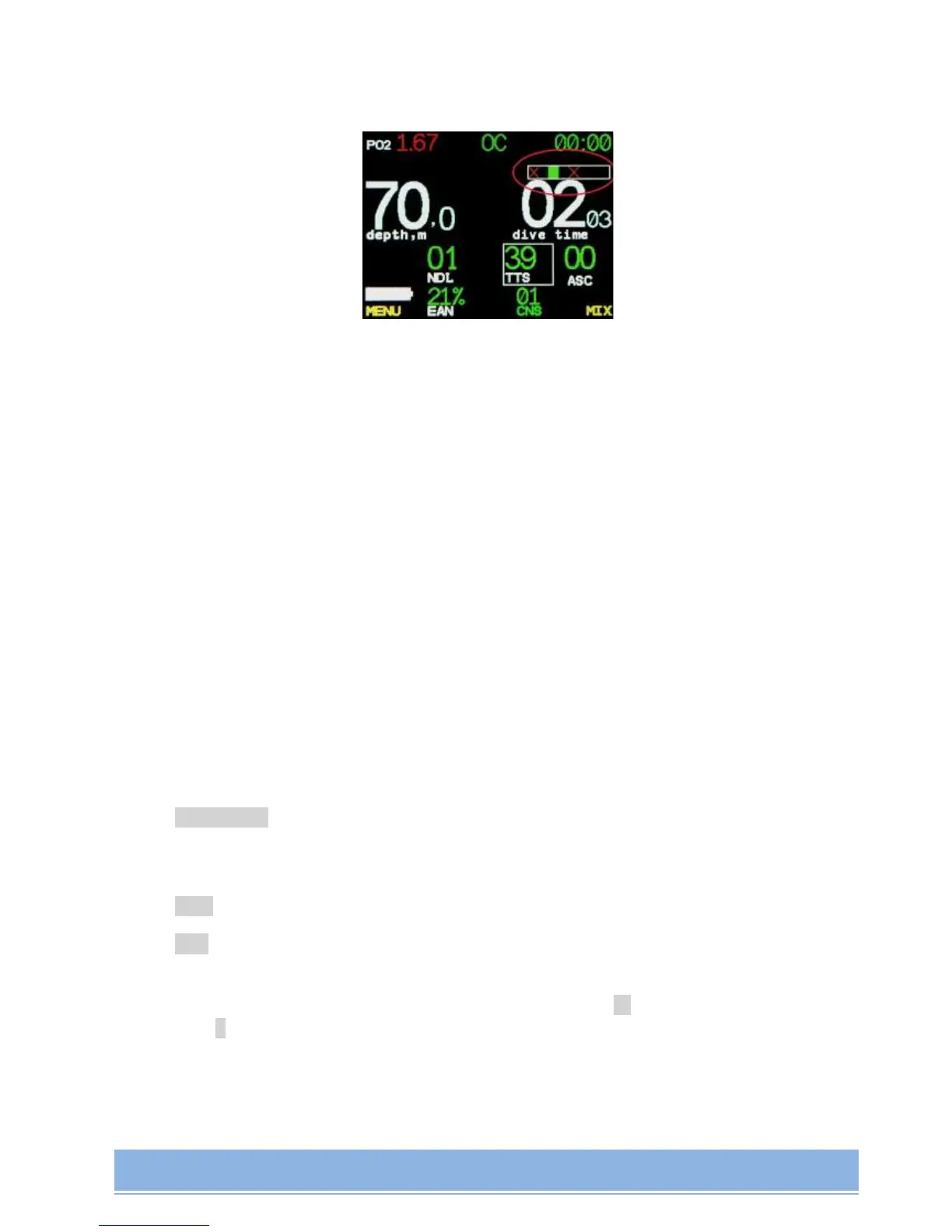 (only in CCR mode) Editing High, Low and Deco Setpoints and Depth of