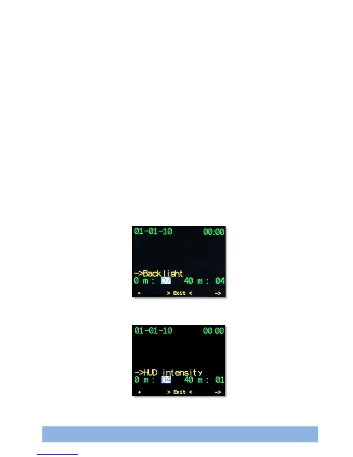Default settings: surface backlight intensity = 7, depth point = 40m, backlight intensity at this