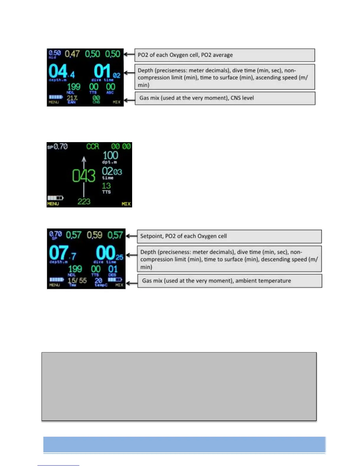 temperature, ascending/descending speed.