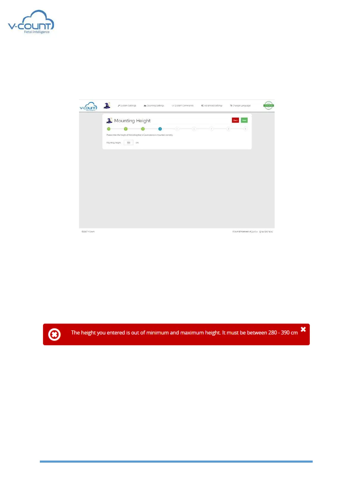 If the height is out of the range of the device a warning bar appears. In case of incompatible