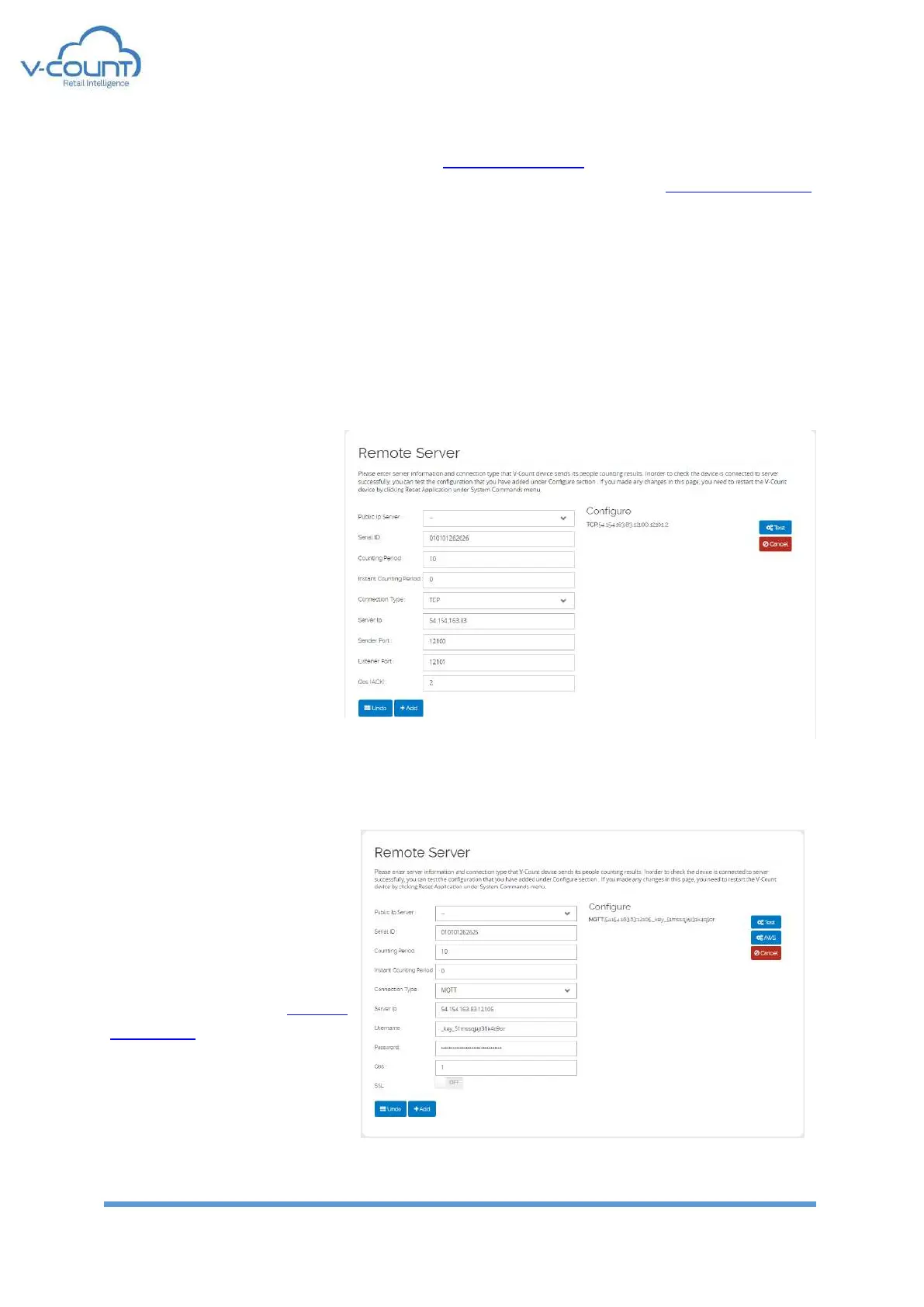connections. By default, MQTT is set at factory settings for connection to cloud.v-count.com.