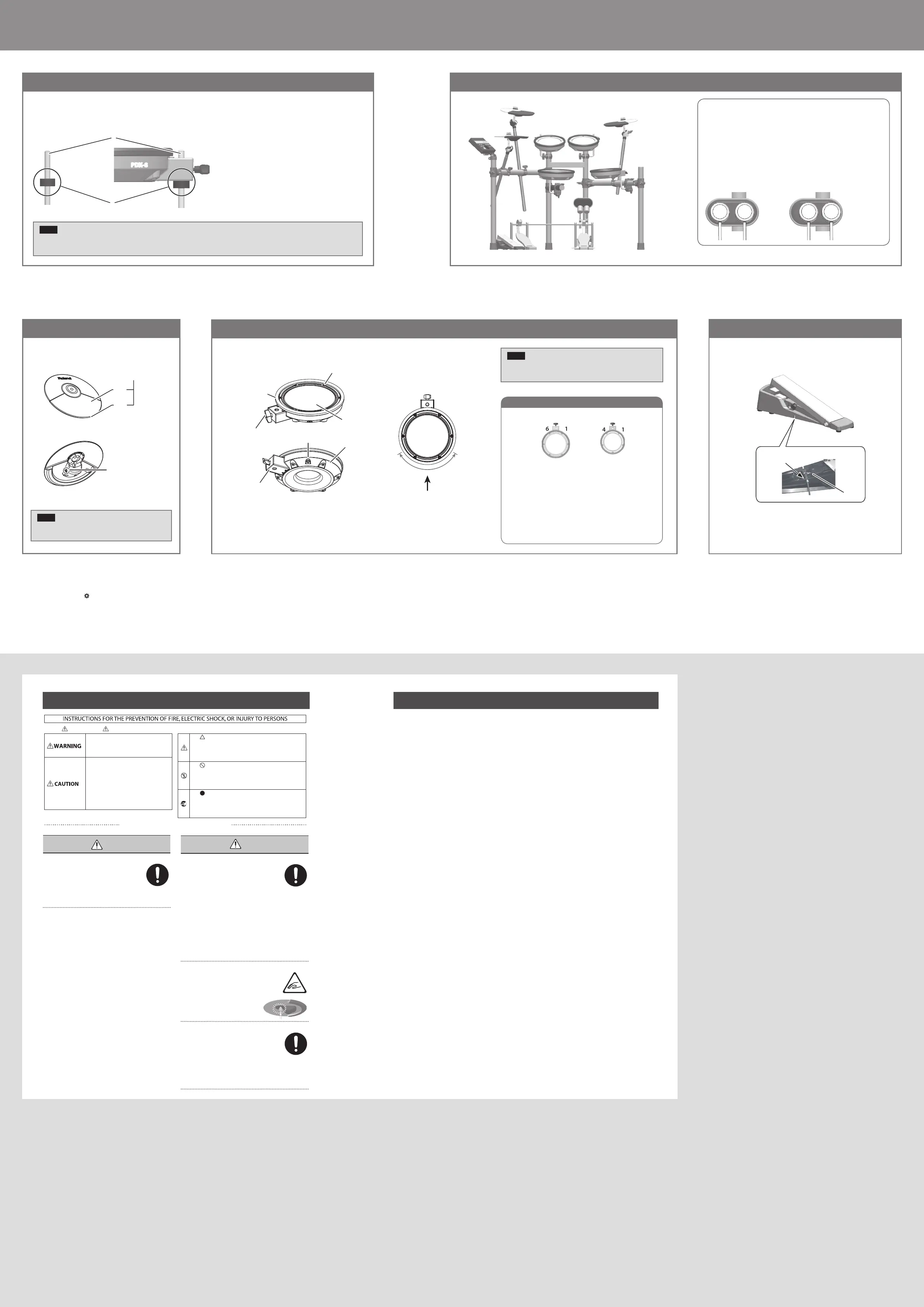* Depending on how the drums are set up and played, some pads might be triggered unintentionally or one of the pads might not respond when two pads are struck at the same time.