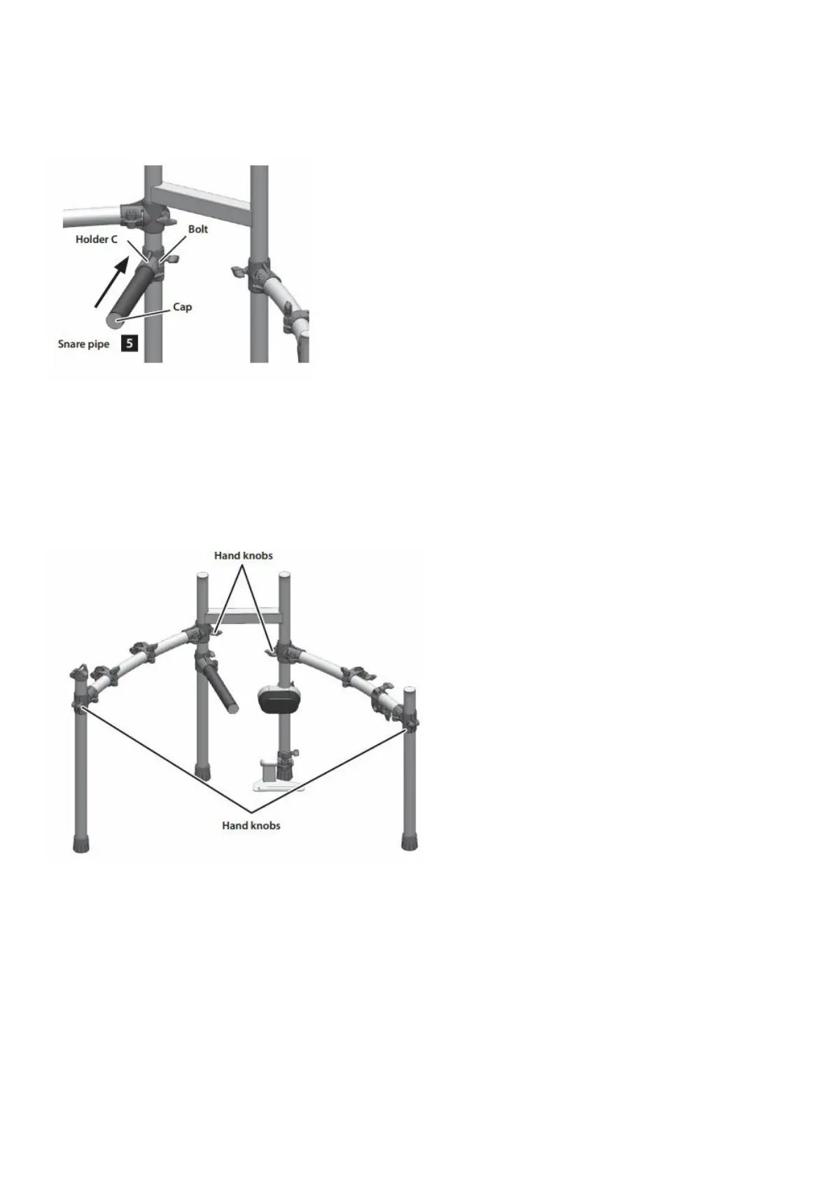 4-1. Use the drum key to loosen bolt of the holder “C,” and insert the snare pipe into holder “C” of the stand.