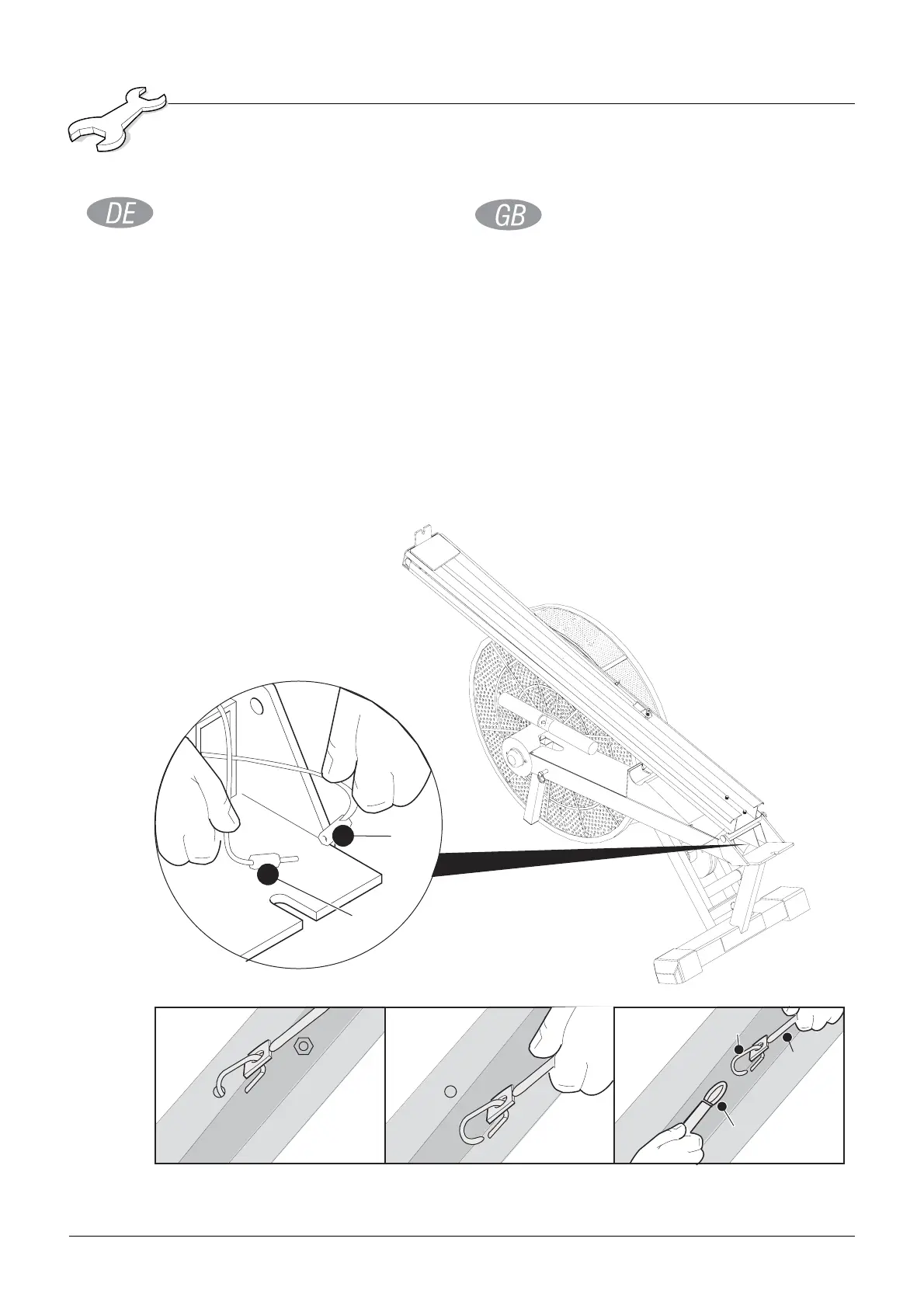 und befestigen Sie Rückholgummi und Kette wie in Abbildung A.