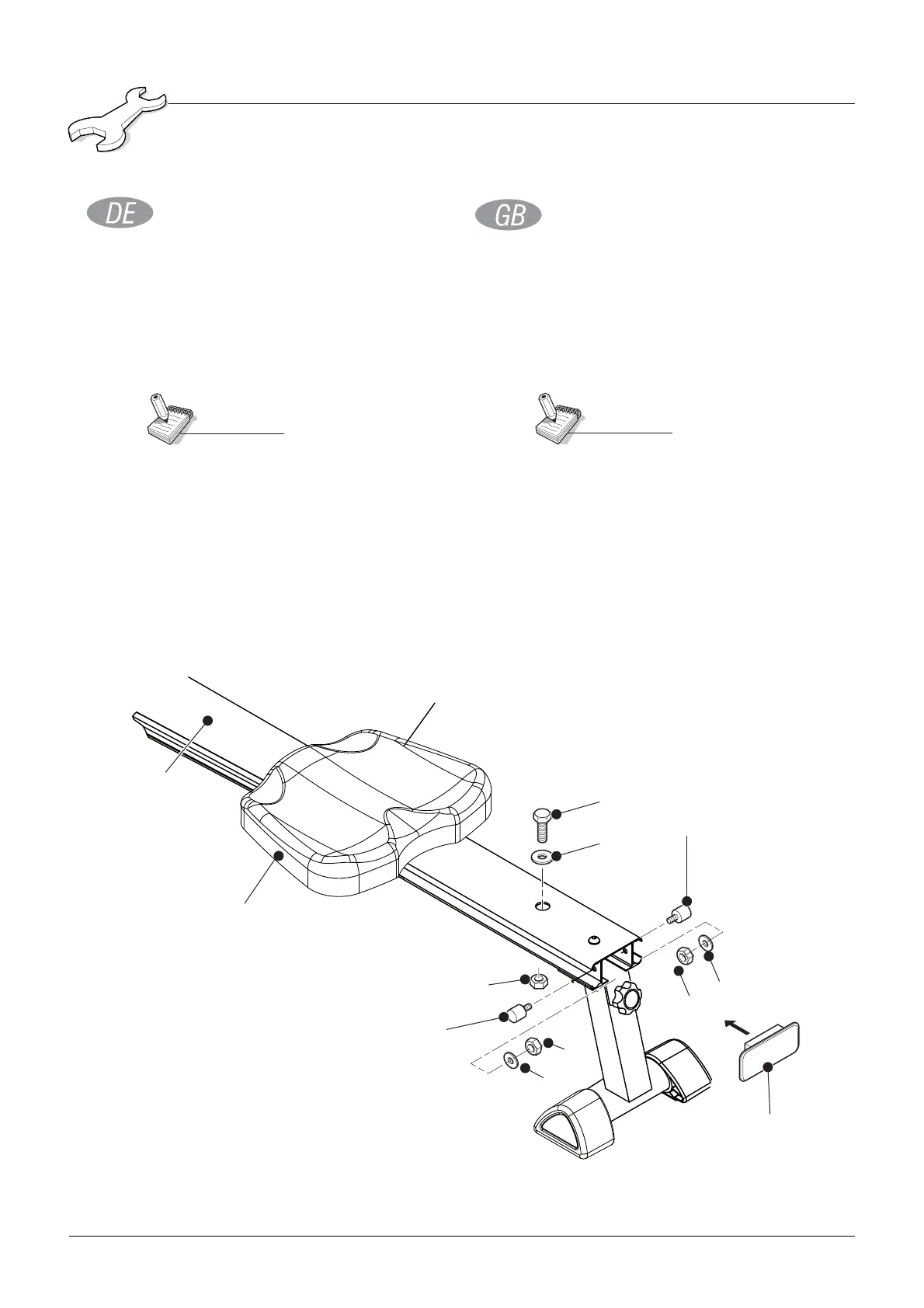hinten auf die Ruderschiene (2) und platzieren Sie