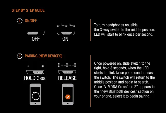 V-Moda Crossfade 2 - STEP BY STEP GUIDE; ON;OFF and Pairing