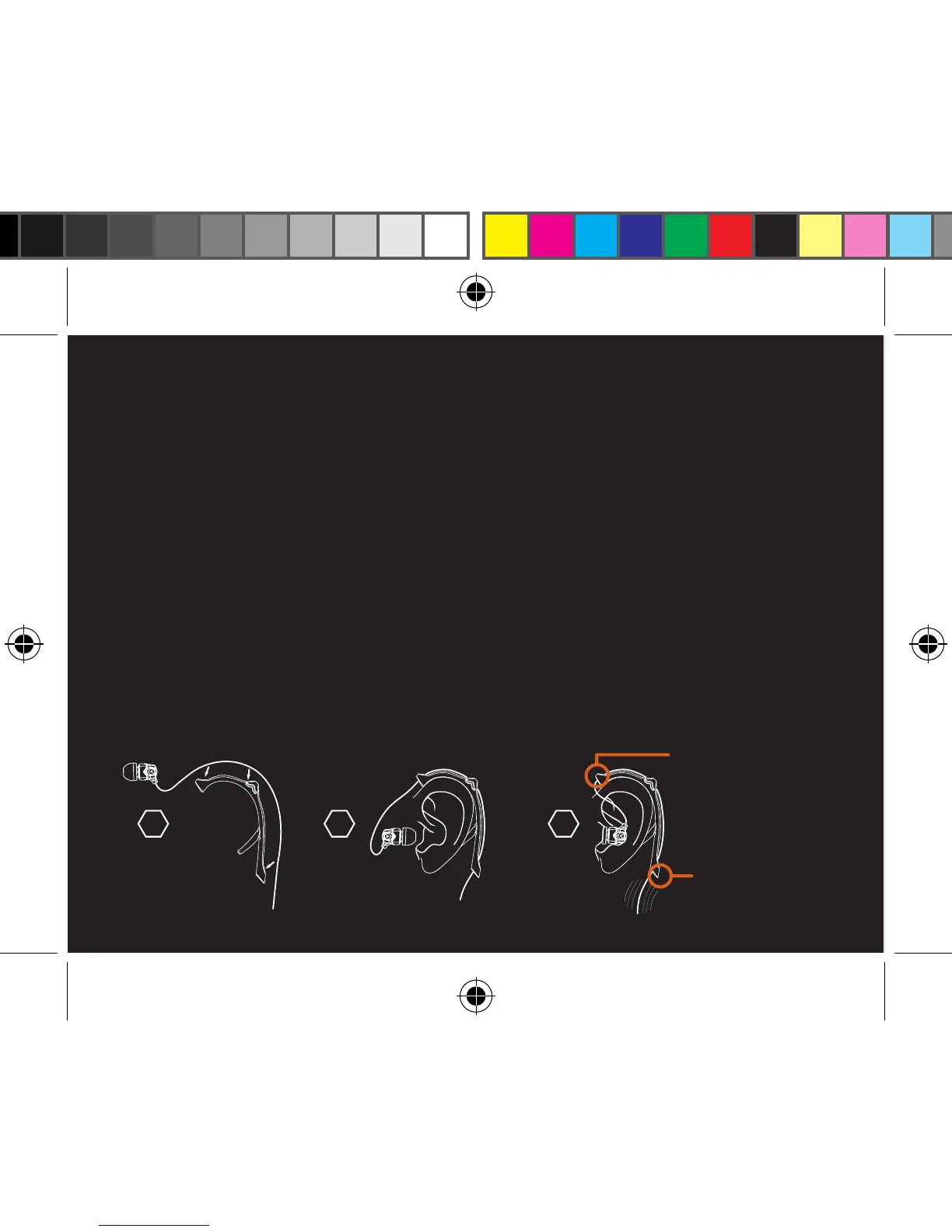 1. Start with earbud hanging about one inch below top of sport earhook (the curved