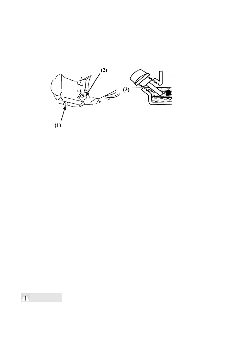 (1)drain plug (2)engine switch (3) lower level
