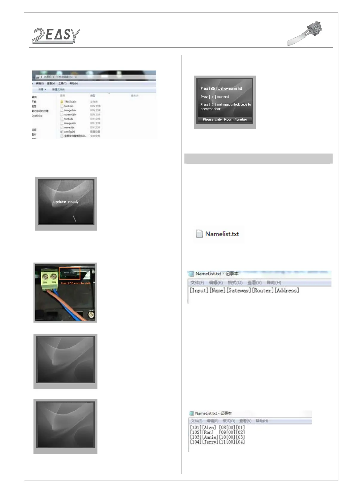 • Edit NameList.txt le, for example, as the following picture shows: