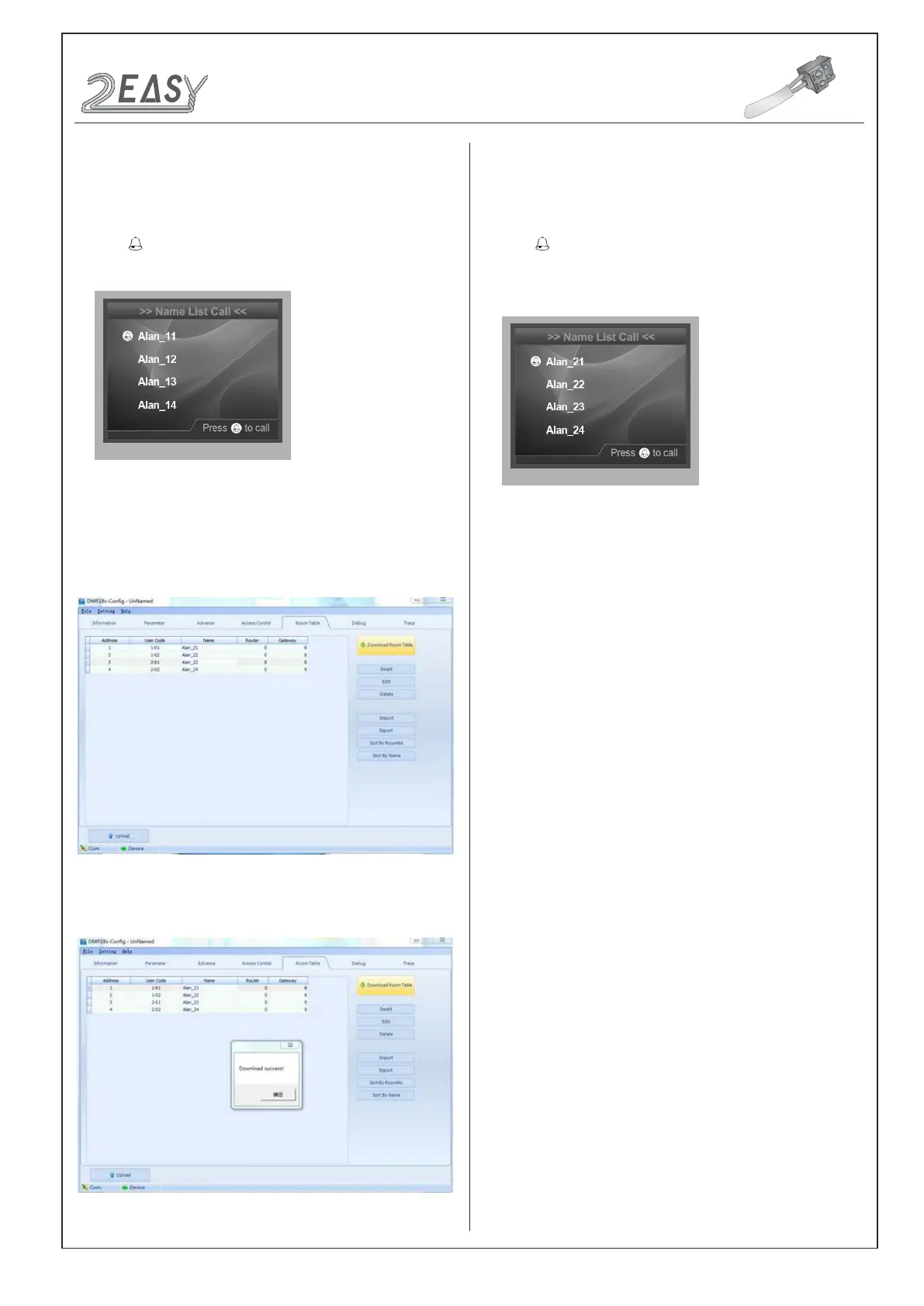 • Input 1-01 to call the monitor 01 in the BDU 1 when it is in