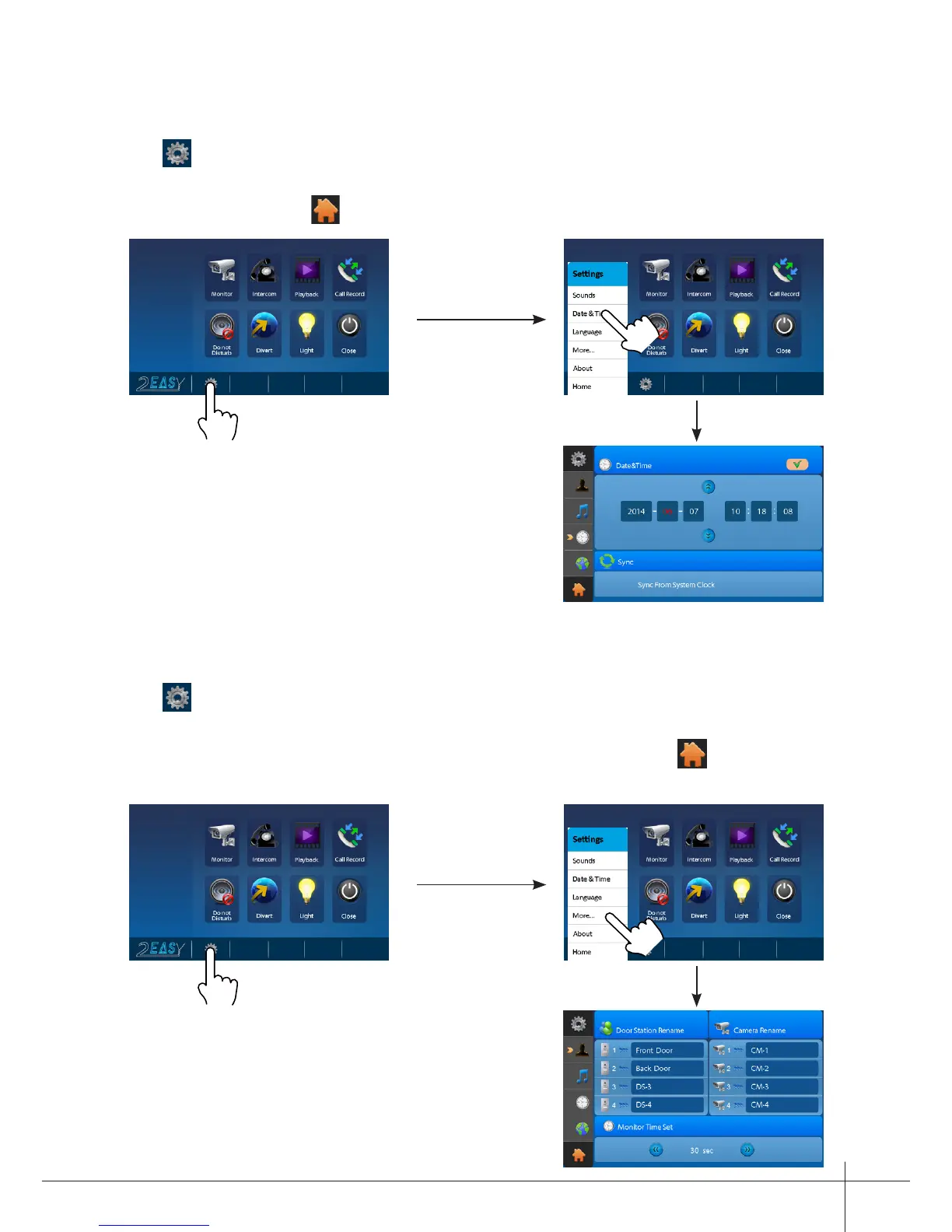station rename, camera rename, monitor time on this page.(touch icon to exit the
