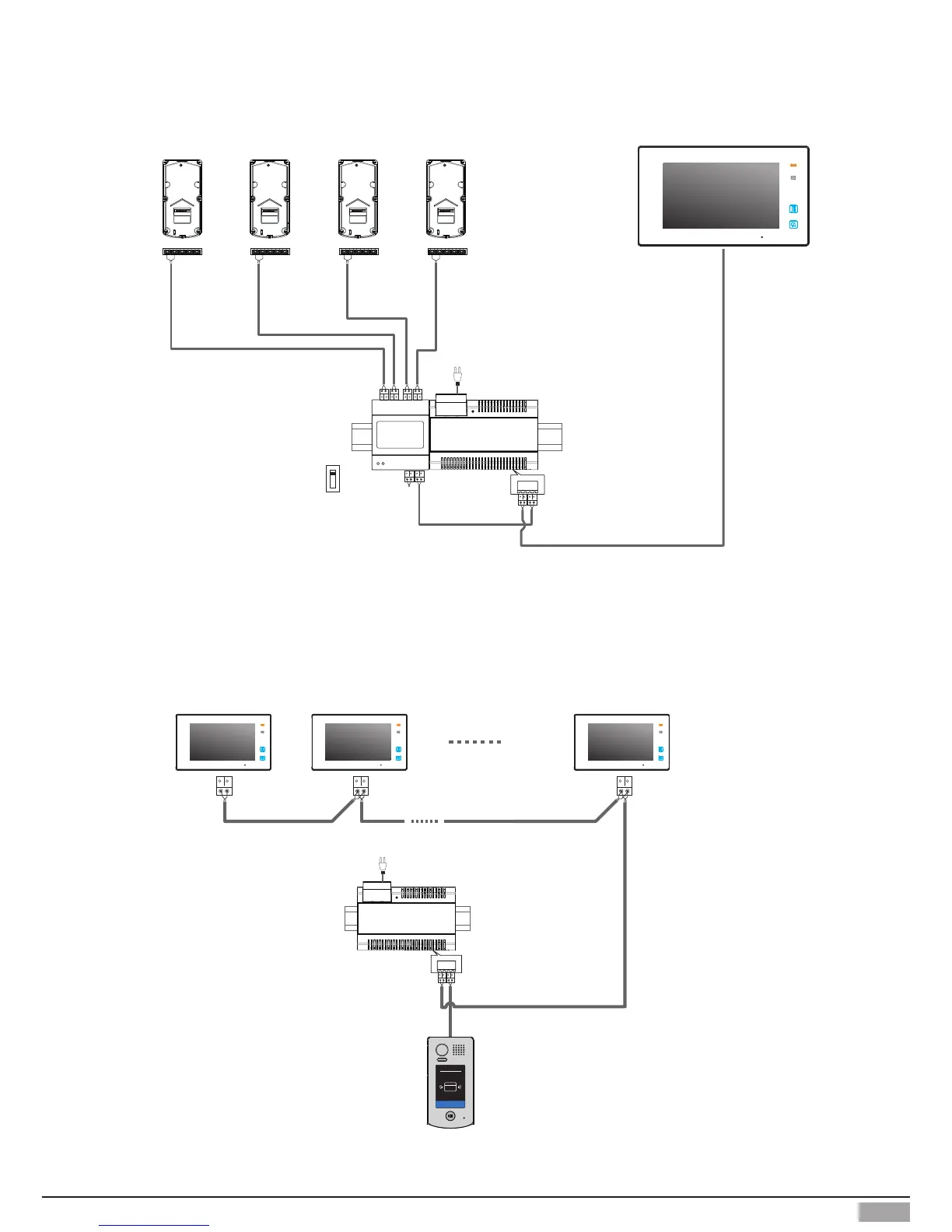 V-Tec DT601 - Multi Door Stations Connection; Multi Monitors Connection; Basic IN-OUT Wiring Mode