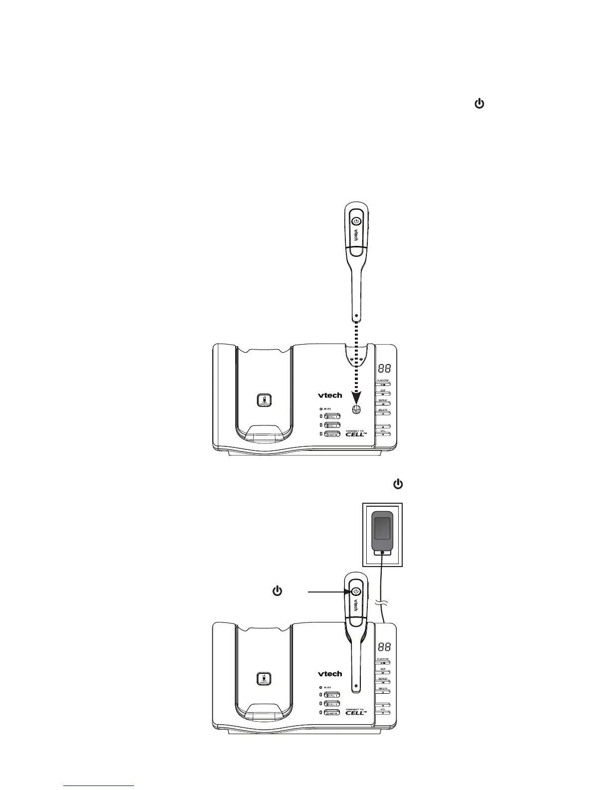 Place the tip of the headset in the small cradle on the telephone base.1.
