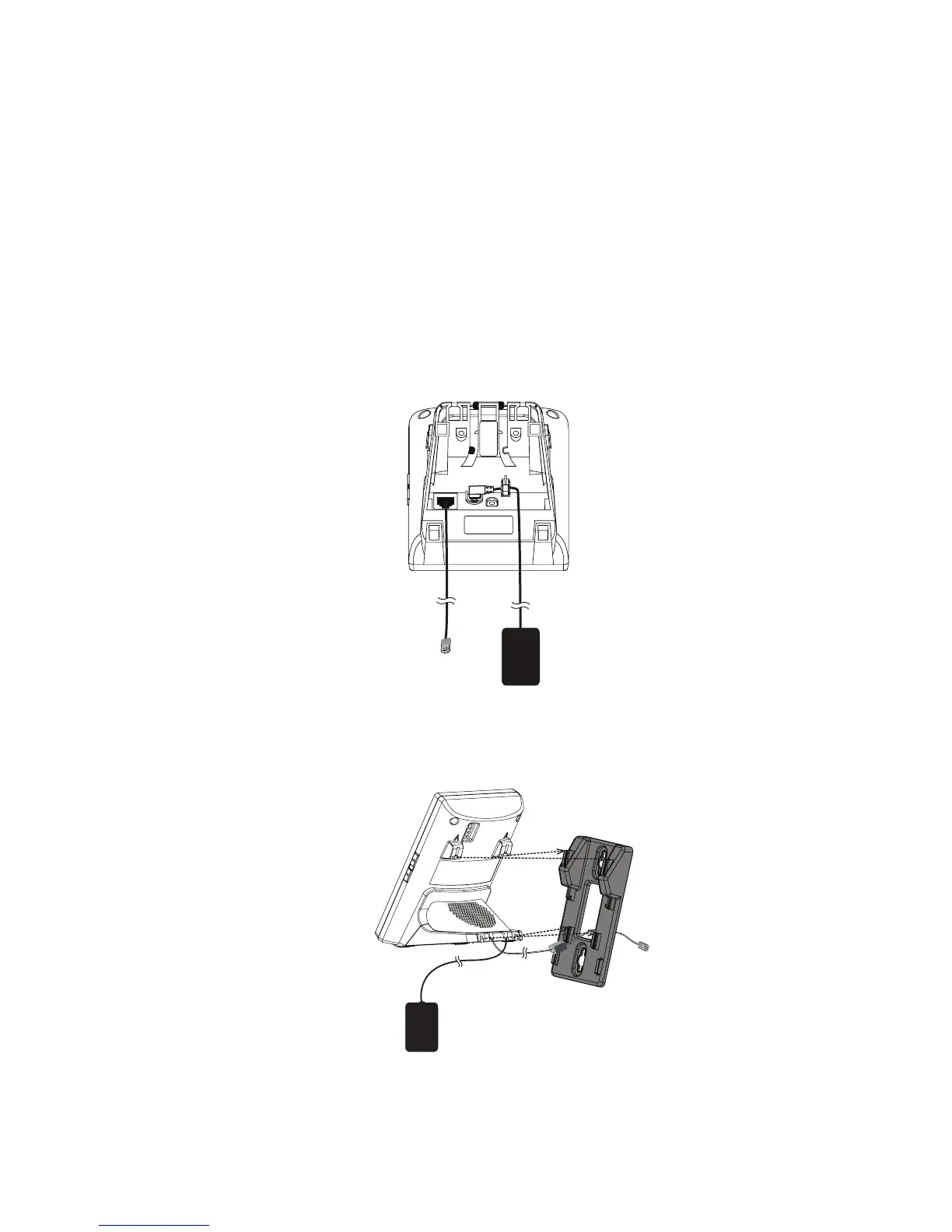 2. Route the telephone line cord through the rectangular hole on the wall mount bracket. Position the