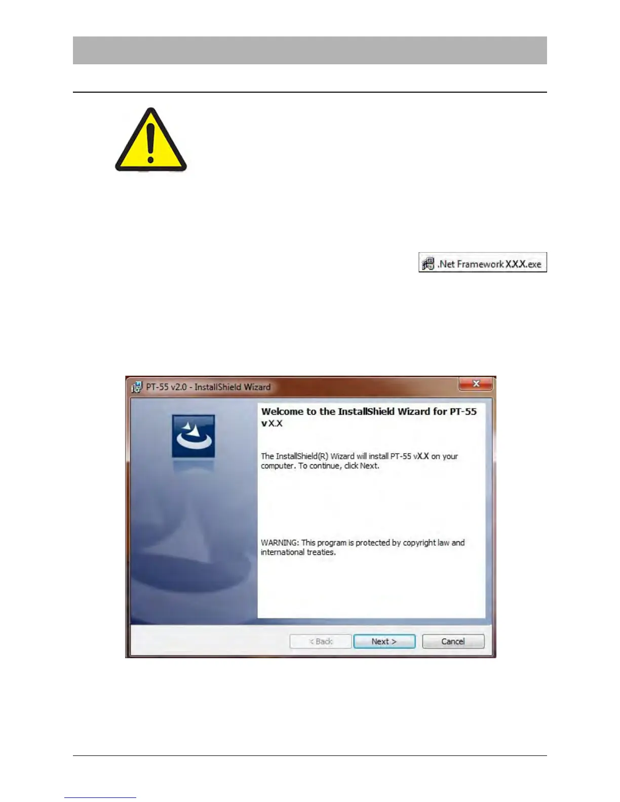 4. Double click S291257 vx.x.x.exe to open the PT-55 InstallShield Wizard.